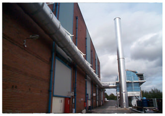 At this time bypass dampers are installed to divert the air automatically to atmosphere or abatement. A central header is installed to a position of the abatement plant to allow emissions profiling.